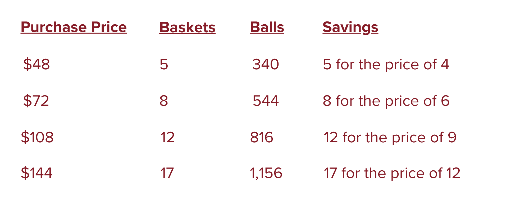 Daily Use Range Ball Prices: