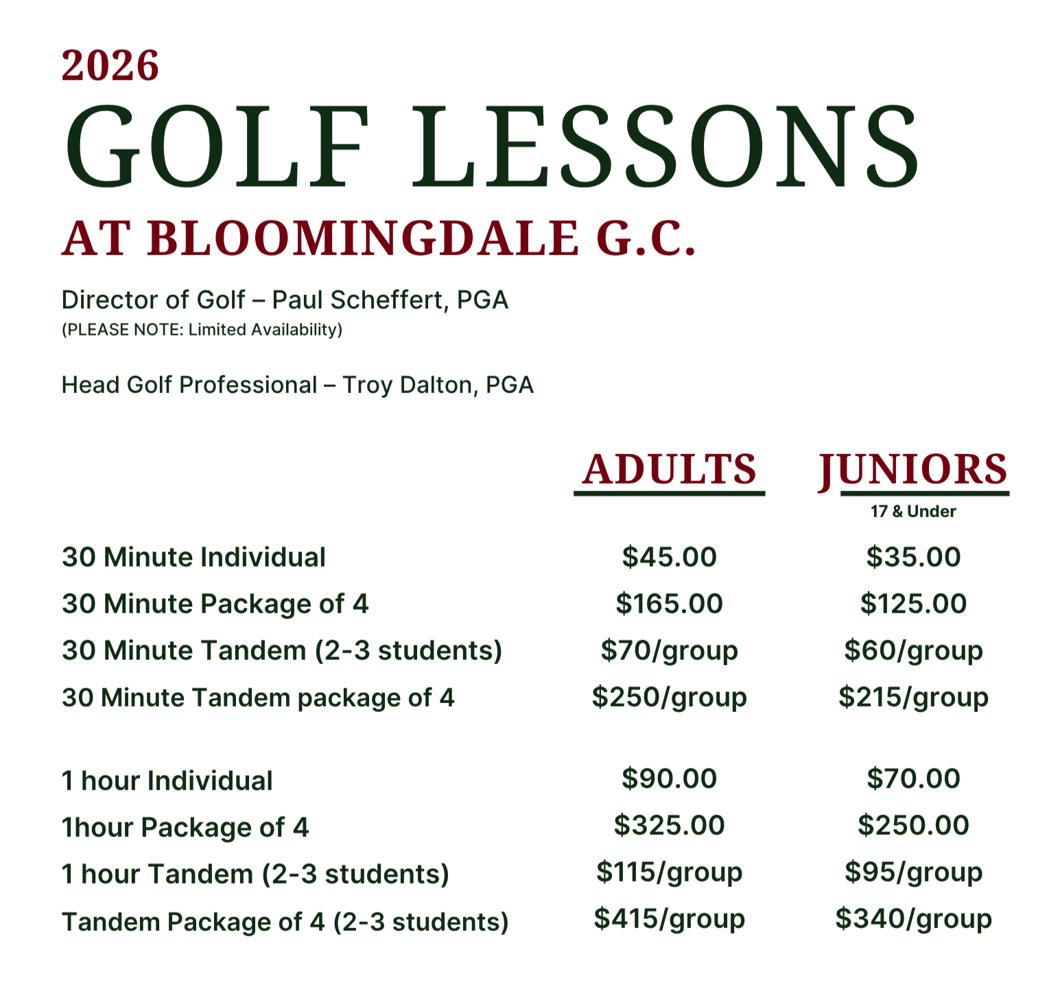 Private Lesson Rates